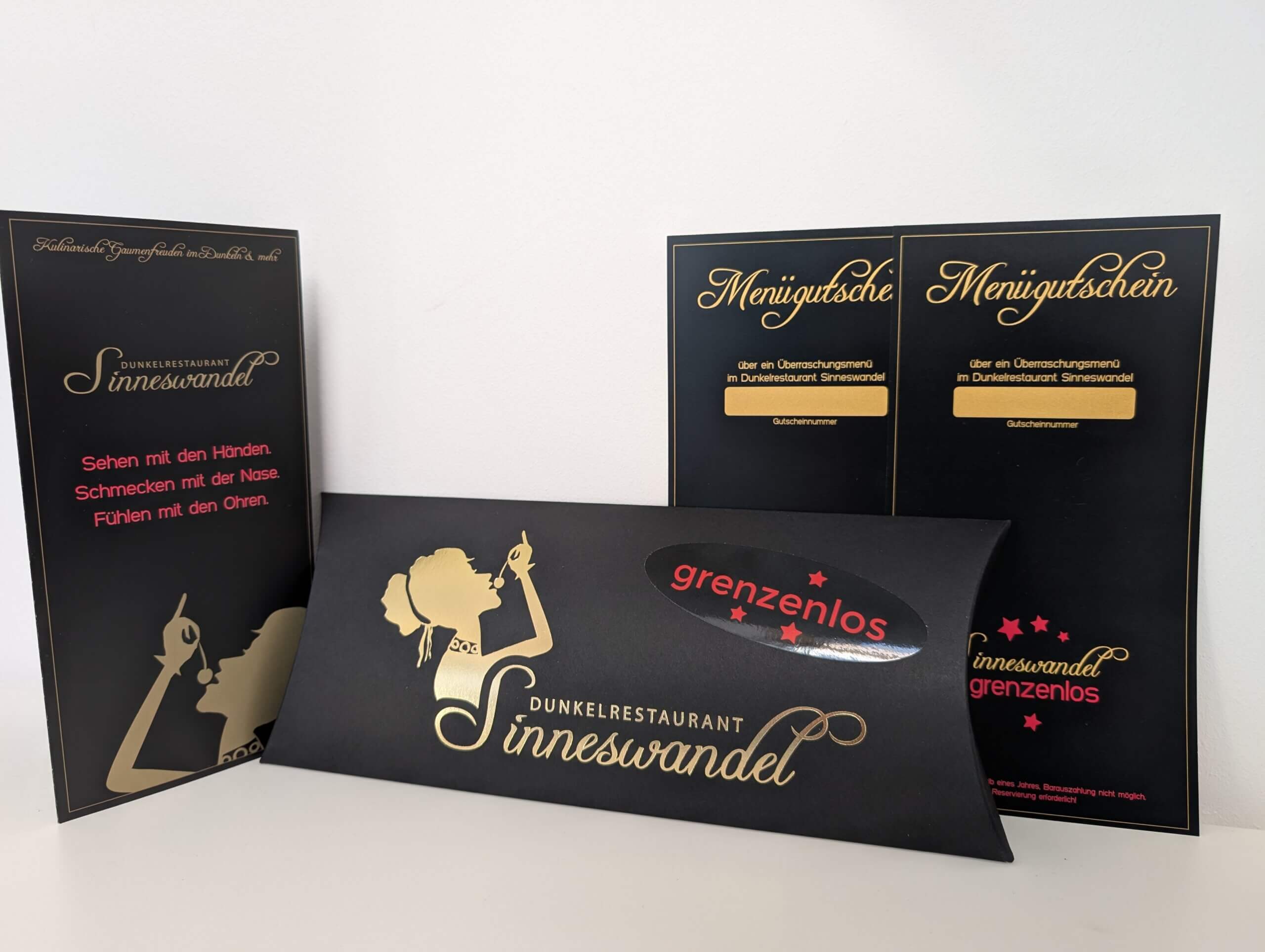 Zusätzlich zum Postversand können Sie Gutscheine auch direkt in unserem Dunkelrestaurant Sinneswandel kaufen (Barzahlung oder EC-Karte). Hierfür ist keine Vorbestellung notwendig.